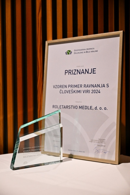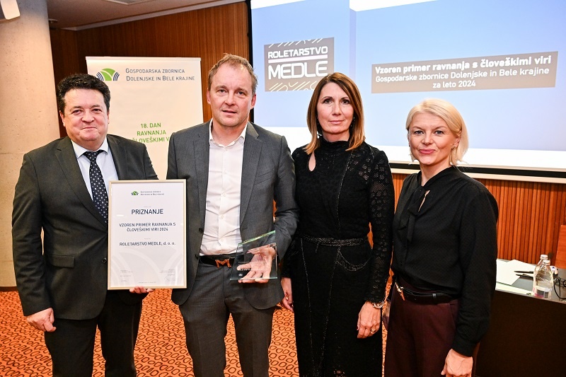 Roletarstvo Medle je prejemnik priznanja Vzoren primer ravnanja s človeškimi viri Gospodarske zbornice Dolenjske in Bele krajine za leto 2024