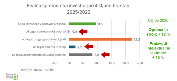 Sicer so se investicije v osnovna sredstva v zadnjih treh letih povečale za slabo desetino, vendar je bila struktura vezana predvsem na nestanovanjske stavbe in inženirske objekte, kjer so se investicije povečale za več kot 20 %. Investicije v stroje in opremo pa so zrasle le za dobra 2 odstotka, investicije v stanovanjsko gradnjo pa so se znižale za 0,4 %.