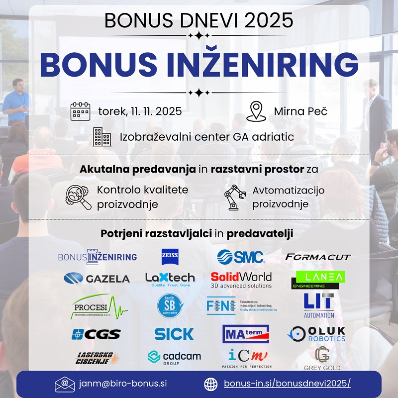 Podjetje Biro Bonus, d. o. o., tokrat že trinajsto leto organizira tudi lastne strokovne dneve. Zaradi velikega zanimanja za Bonus dan bo dogodek letos razdeljen na dva dni: Bonus inženiring (11. 11. 2025) in Bonus računovodstvo (13. 11. 2025). Predstavili bodo zanimive teme iz področja računovodstva, davkov in inženiringa.