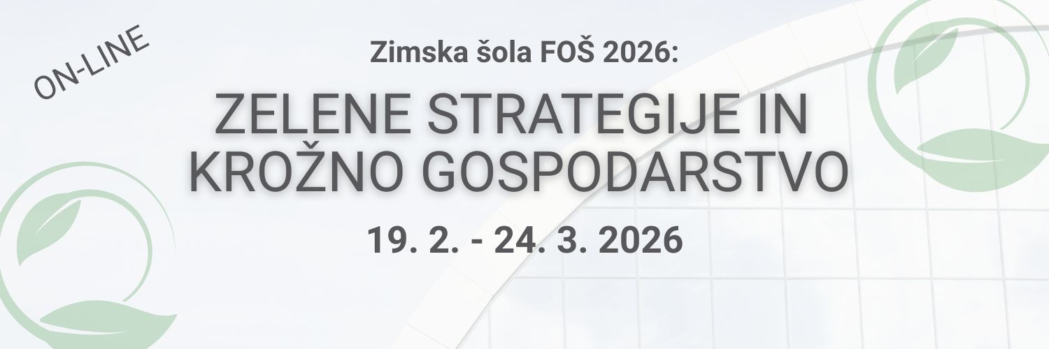 Vabimo vas na Zimsko šolo FOŠ 2026: Zelene strategije in krožno gospodarstvo, ki bo potekala od 19. februarja do 24. marca 2026, na daljavo (MS Teams).